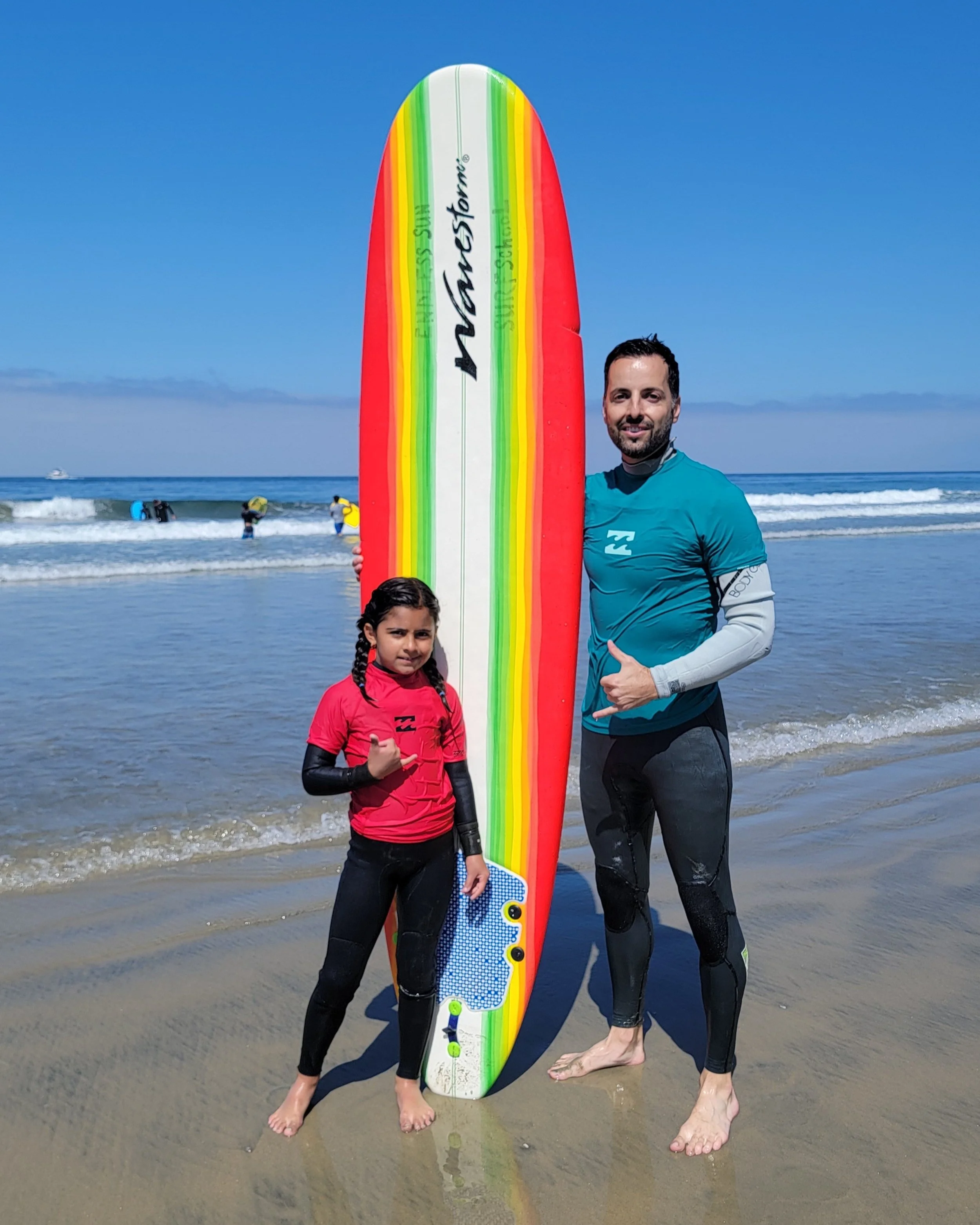 One year later, my daughter begged to do the surf camp again. 10 minutes into the camp I asked the main instructor, “can I join too?”. Mind you I'm 41 years old, and the next oldest participant was about 12 years old. They were very supportive to have me join. And I was so excited and nervous to get in there.