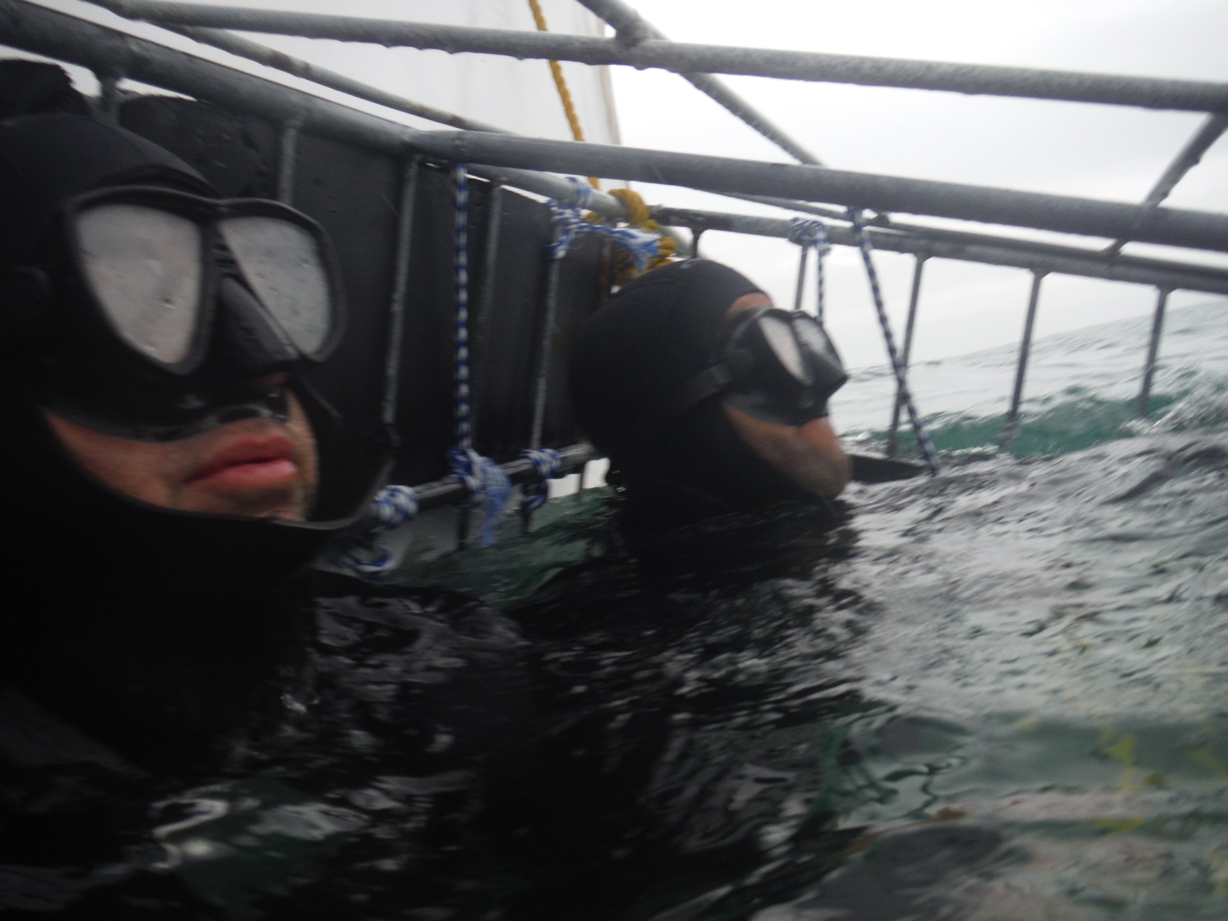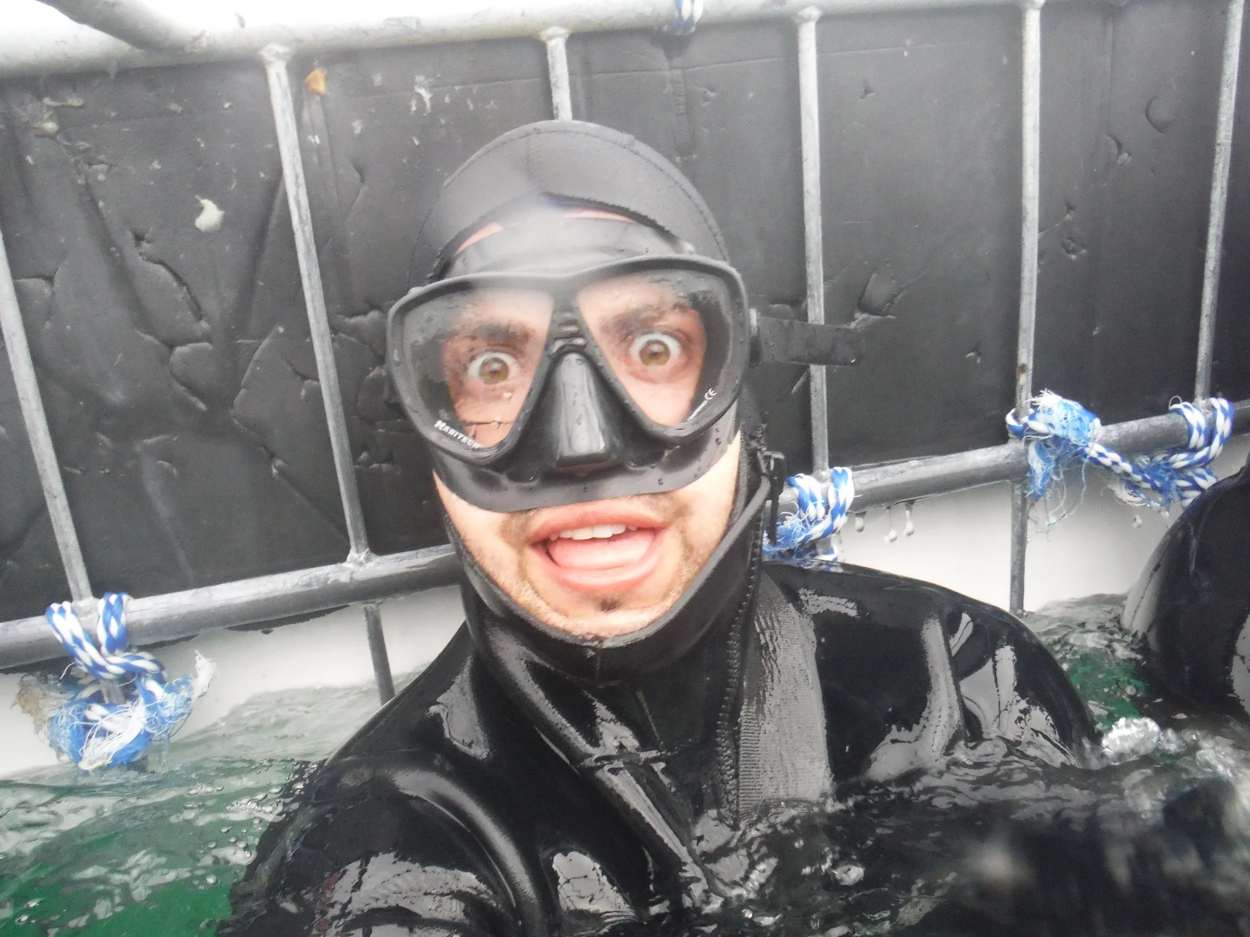 Shark diving with Great White Sharks in South Africa. Freezing, fun and exhilarating.