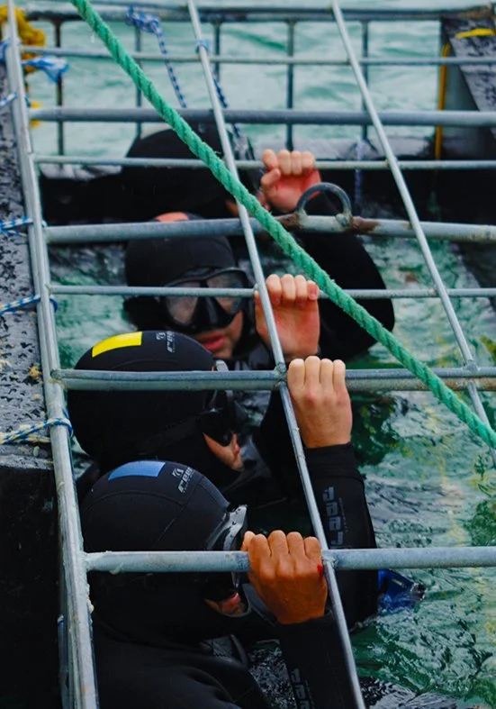 Sliding into the steel cage, submerged into freezing Atlantic waters, I was instantly hit by the cold — and the tension. The ocean feels different when you’re not on top of it… but in it, waiting. Then, it happened.