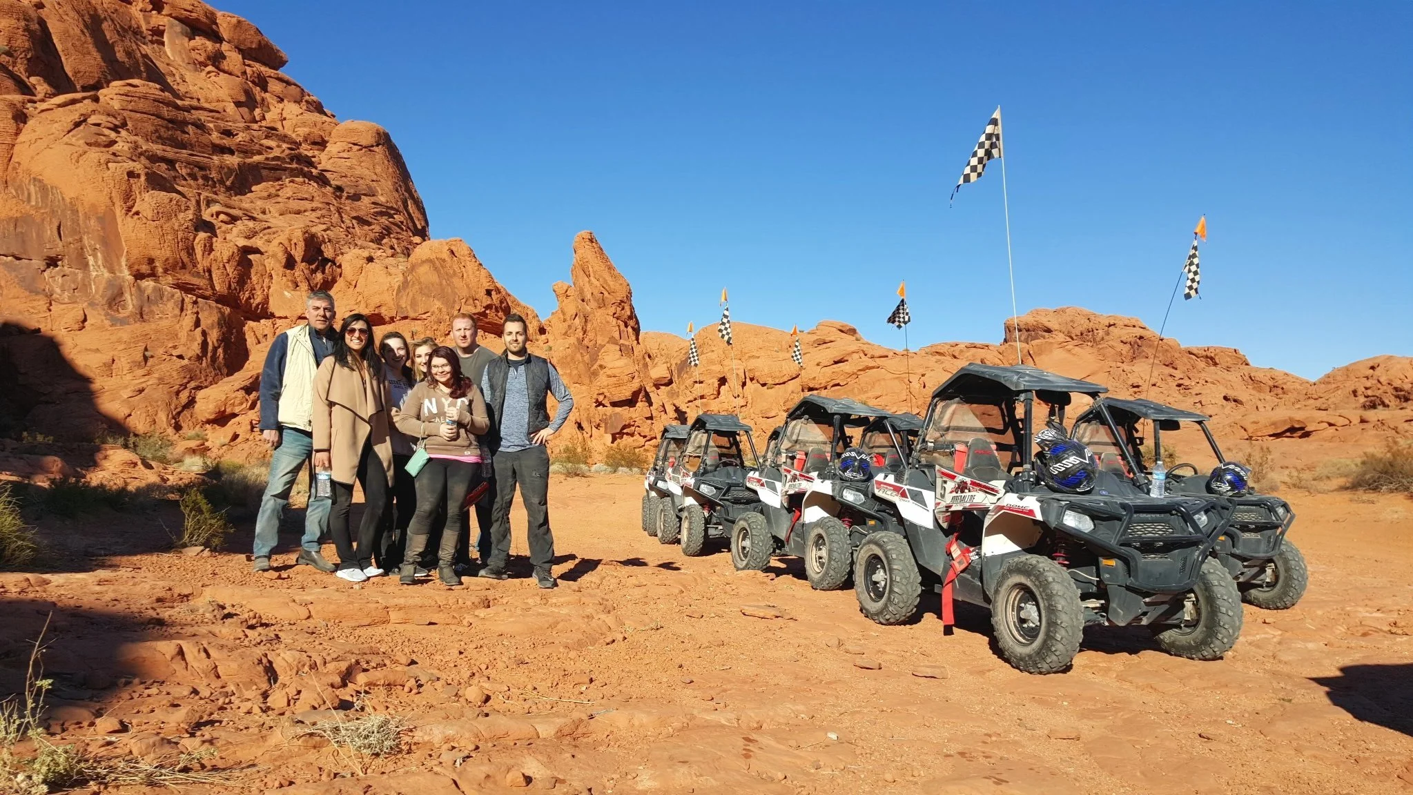 We wanted to try something a little different to bond with our clients and strengthen our team. After a night of enjoying drinks in Las Vegas, about a dozen of us headed into the Mojave Desert the next day to ride ATVs. Amid amazing scenery, we let it all out and had a blast.