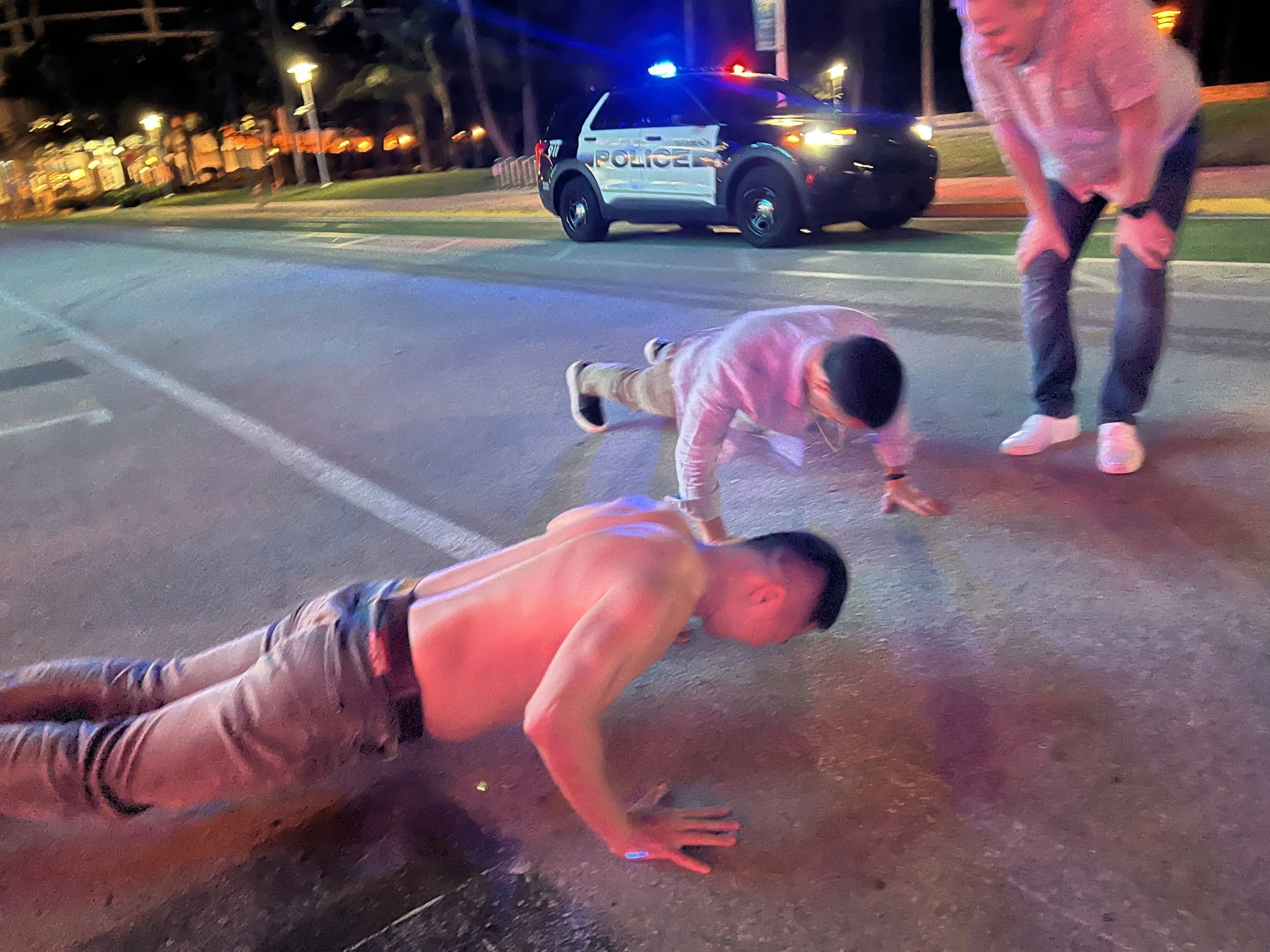 Yes, pushup competition in South Beach, Police on hand.