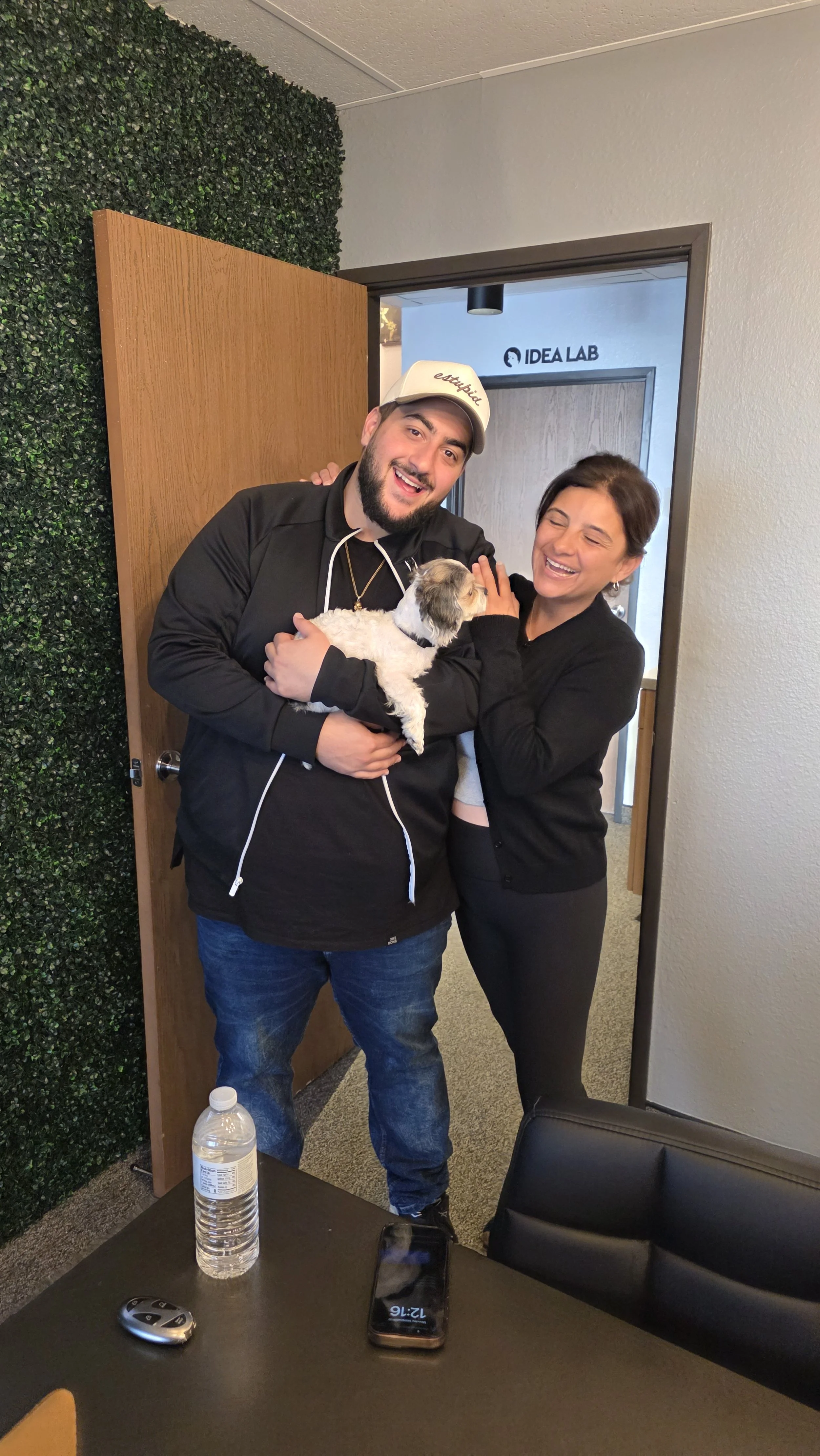 Neema Naz with Dina Stroumboulis and Theo at Ideoli Group HQ in Newport Beach, following the Invigorate Your Business Podcast recording.